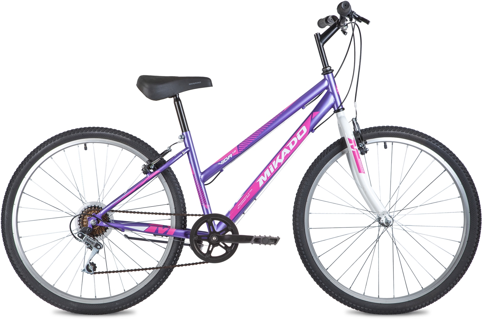 ХарактеристикиБренд MIKADO Модель 26" VIDA 1.0 Год 2022 Серия Vida Материал рамы Сталь (Hi-Ten) Рама/описание СТАЛЬ HI-TEN Тип вилки Жесткая (сталь) Вилка/регулировки СТАЛЬНАЯ ЖЕСТКАЯ ВИЛКА Диаметр колес 26" Обода АЛЮМИНИЕВЫЕ УСИЛЕННЫЕ Резина HYD MTB 2.125" Тормоза Ободные (V-brake) Тормоз V-BRAKE; СТАЛЬНОЙ Уровень оборудования Начальный Шифтеры YUANDA K22; 6CK; ТВИСТЕР Переключатель задний YUANDA H30 Кассета SANZUAN FW02; 6CK; 14-28T Цепь TAYA TS-30; 6CK Каретка РЕГУЛИРУЕМАЯ 5И КОМПОНЕНТНАЯ Шатуны СТАЛЬНЫЕ; 170MM; 38T Количество скоростей 6 Руль СТАЛЬНОЙ RISER; 25.4X600MM; ПОДЪЕМ 35MM Рулевая колонка FEIMIN H501; 1"; РЕЗЬБОВАЯ Вынос СТАЛЬНОЙ; 25.4X100MM; РЕЗЬБОВОЙ Подседельный штырь СТАЛЬНОЙ; 28.6X300MM Втулка передняя СТАЛЬНЫЕ; M10; 32 ОТВ. Пол/возраст Женский Втулка задняя СТАЛЬНЫЕ; M10; 32 ОТВ.